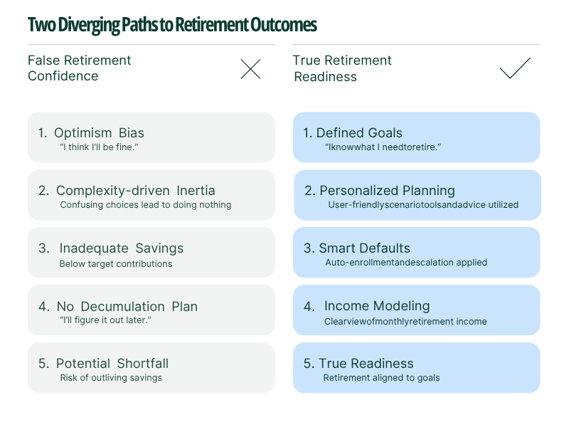 A visual model in the report depicts two diverging paths—one driven by false confidence and inertia, the other by true readiness and planning.⁷